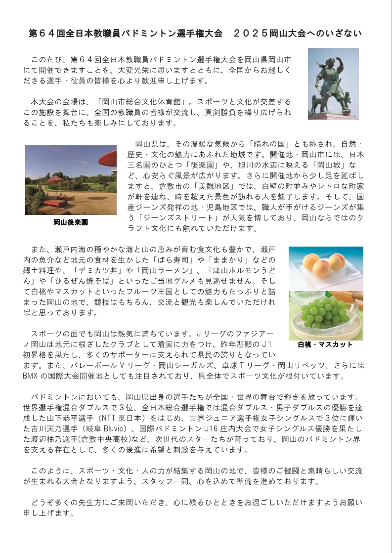 第64回 全日本教職員バドミントン選手権2025岡山県大会